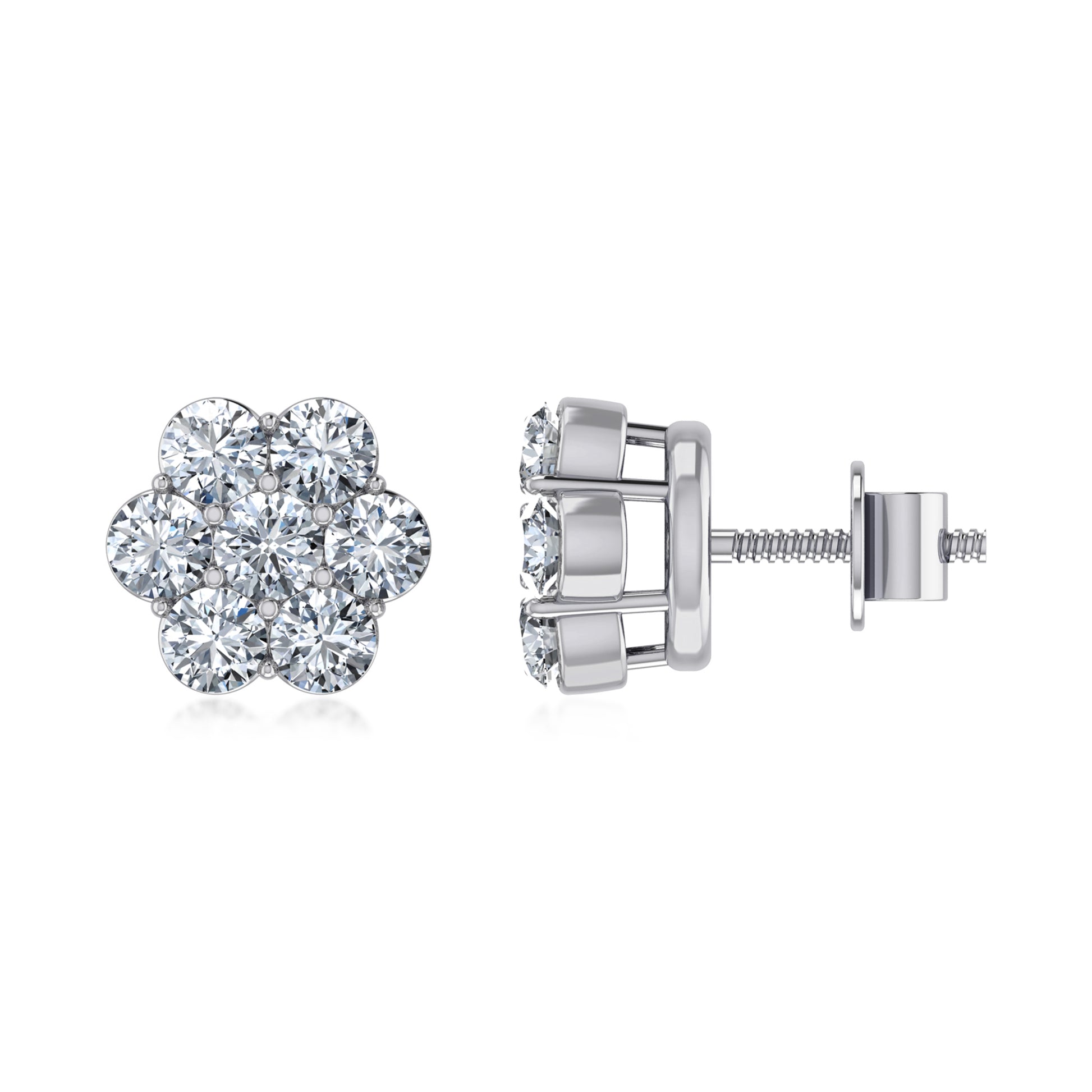 Sterling Silver Round Cz Flower Stud Earrings RP