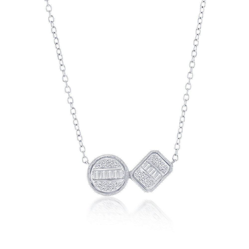Sterling Silver Round & Emerald-Cut Diamond Necklace - (44 Stones)