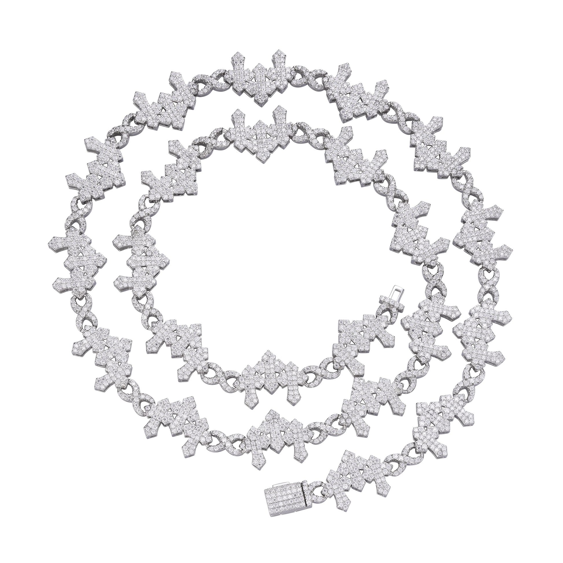 Sterling Silver Round Moissanite Infinity 3 Cross 22 Inch Religious Necklace RP 9-5/8 Cttw