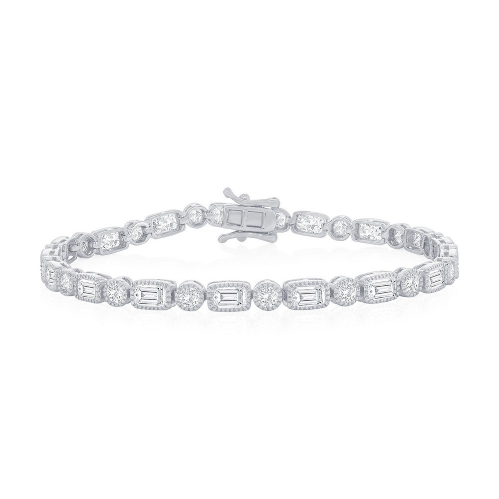 Sterling Silver, Round & Rectangle CZ Bracelet