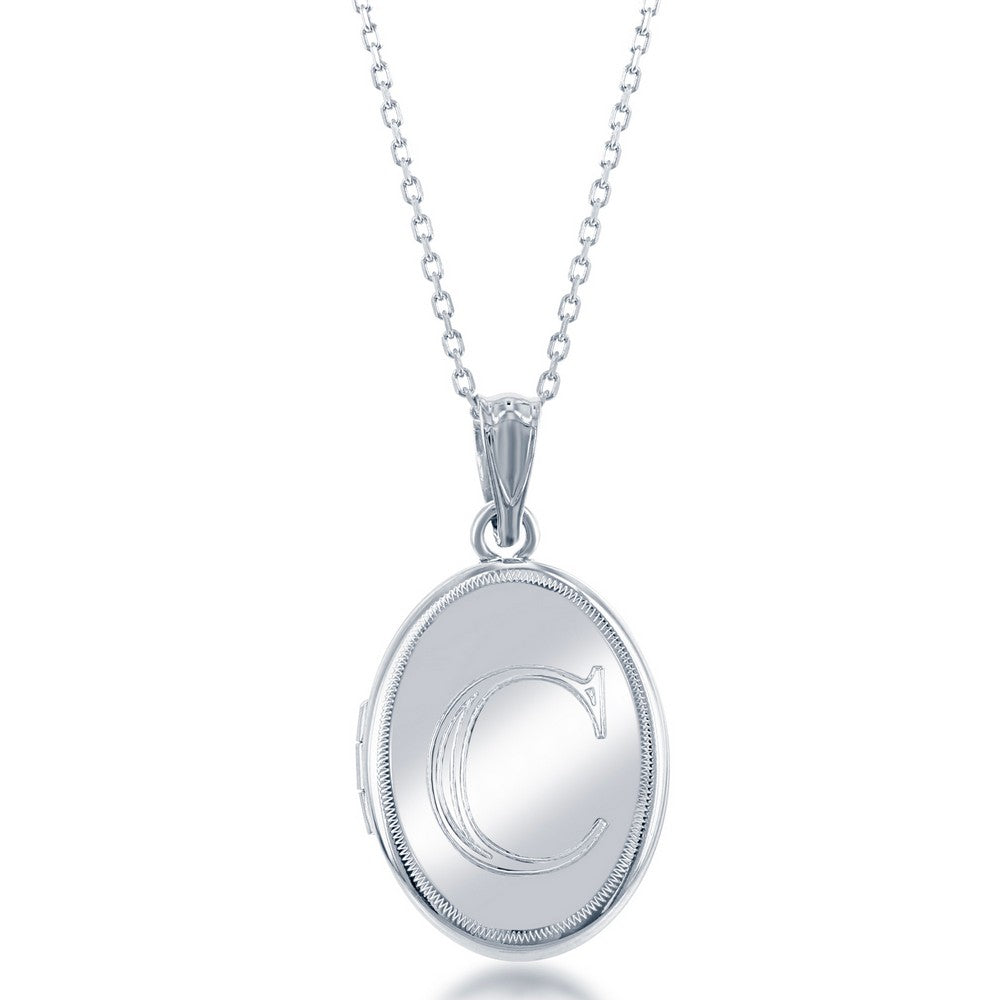 Sterling Silver Shiny Oval with Center "C" Initial Locket W/Chain