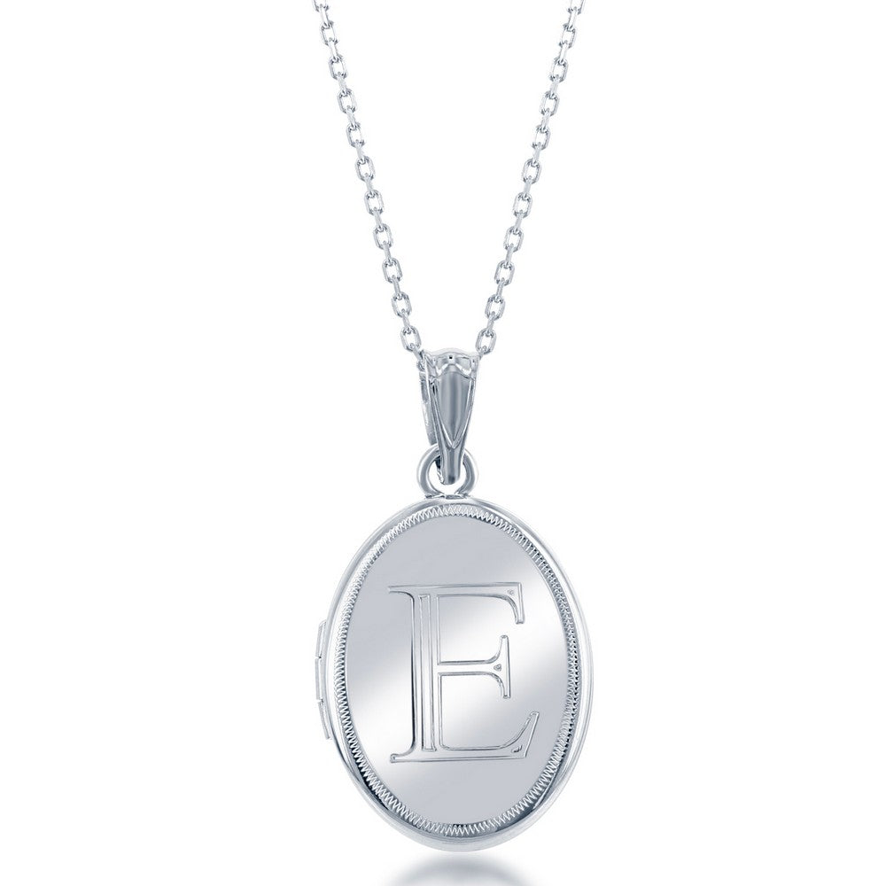 Sterling Silver Shiny Oval with Center "E" Initial Locket W/Chain