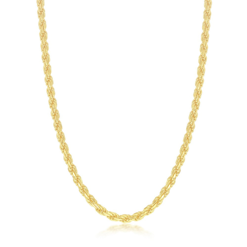 Sterling Silver, Solid Diamond-Cut 3mm Rope Chain - Gold Plated
