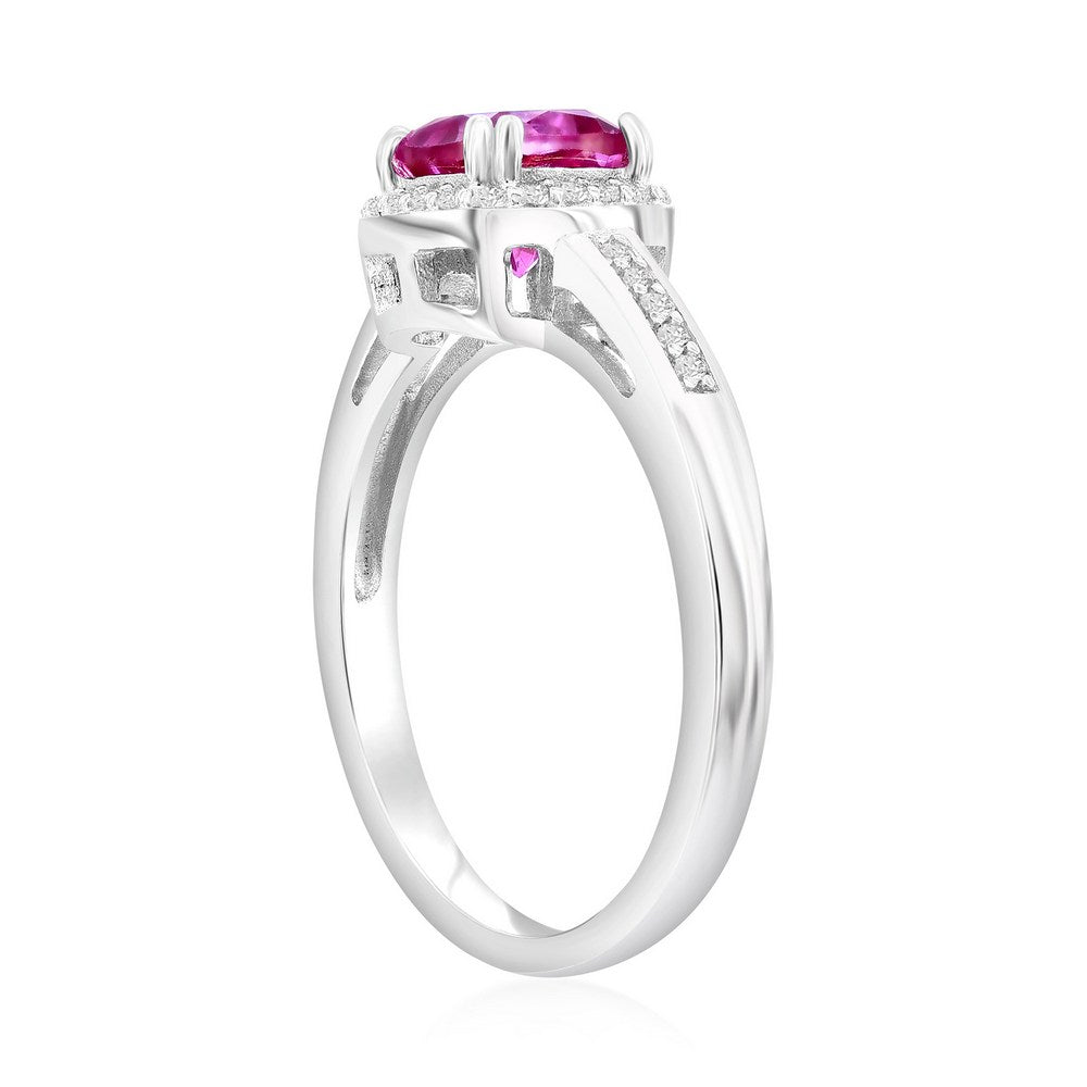 Sterling Silver, Square Pink Topaz & White Topaz Ring