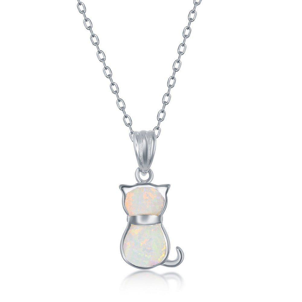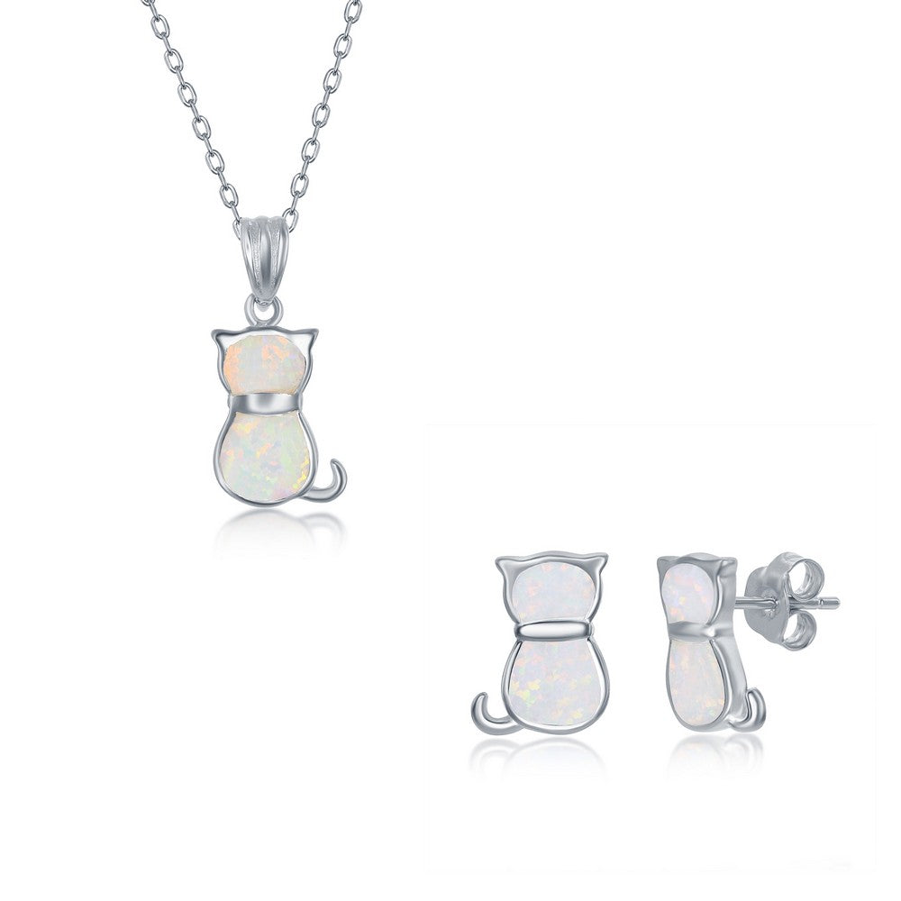 Sterling Silver White Inaly Opal Necklace and Earrings Set - Cat