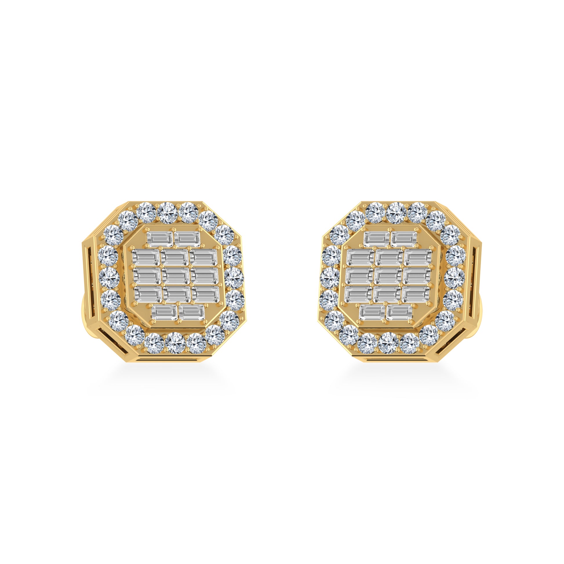10K Yellow Gold Diamond Designer Stud Earring 1/2 Cttw