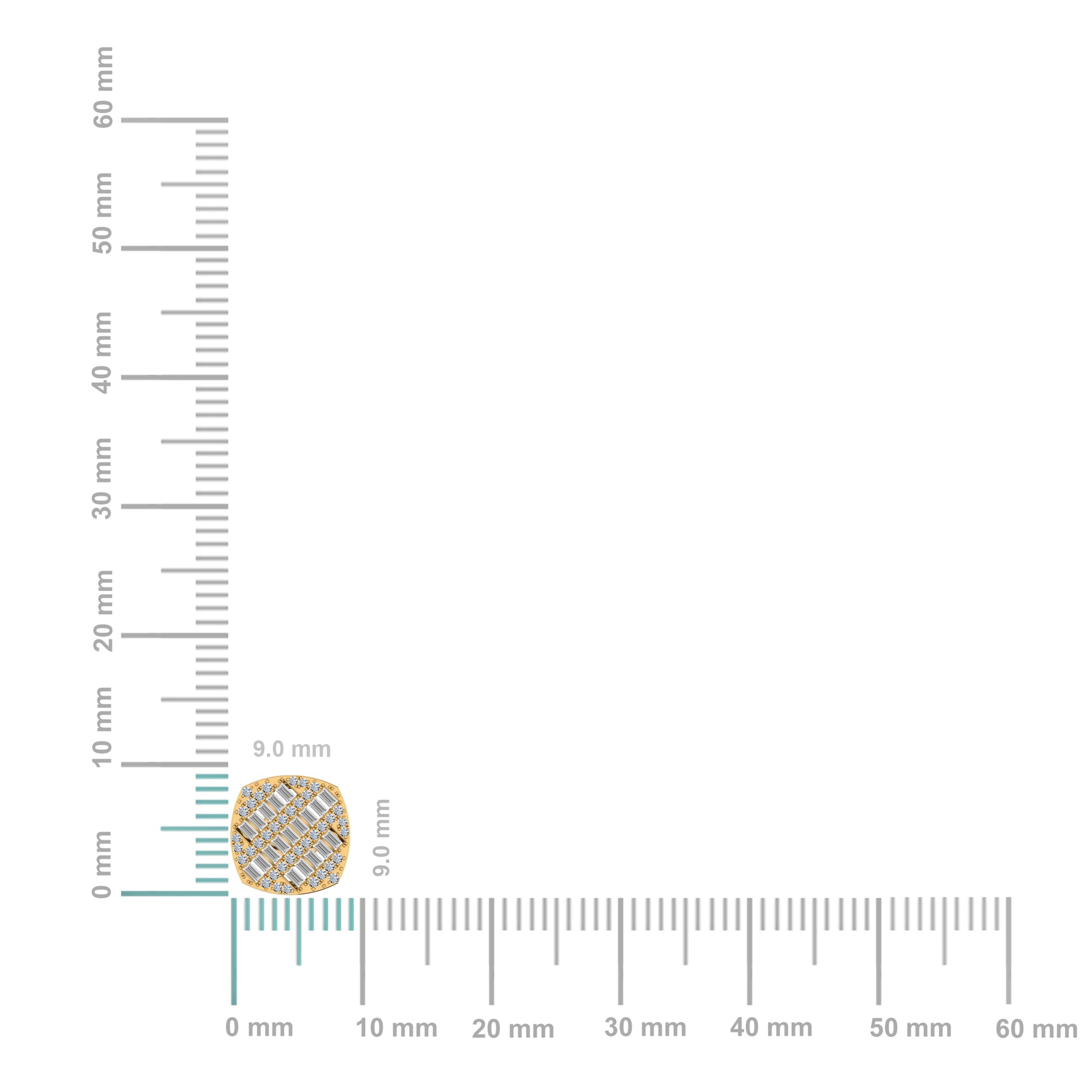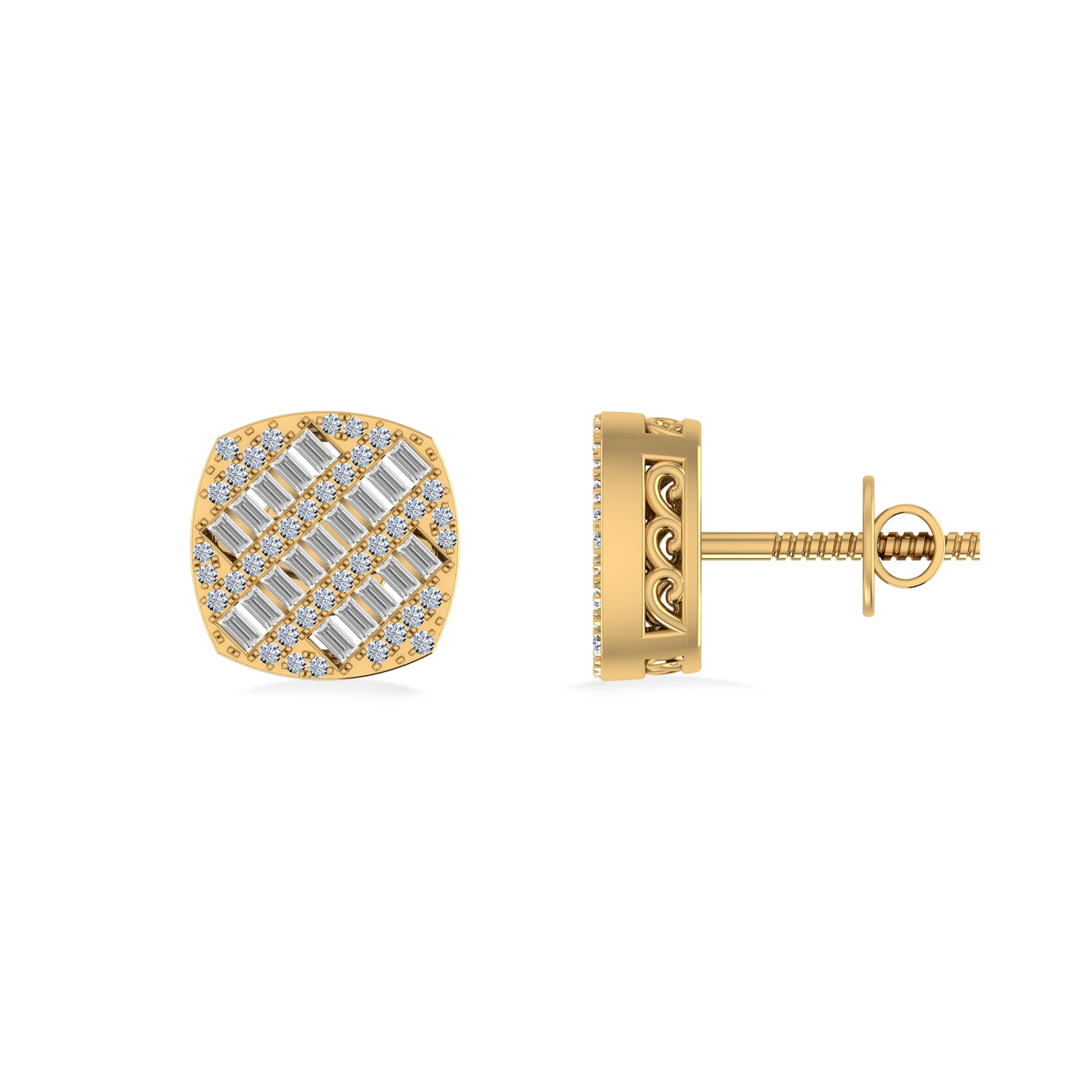 10K Yellow Gold Round Baguette Diamond Square Shape Designer Mens Stud Earring 1/3 Cttw