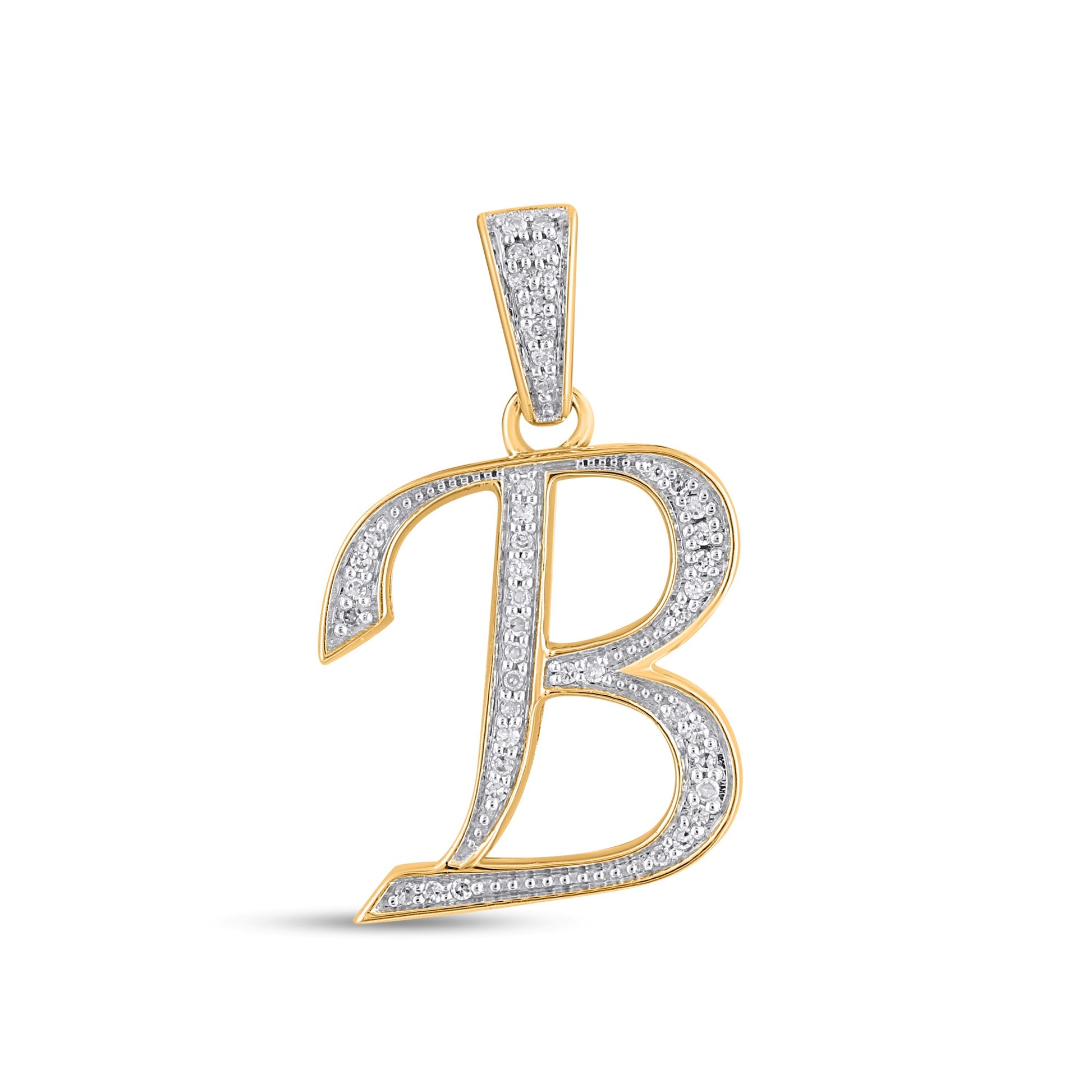10K Yellow Gold Round Diamond B Letter Initial Pendant 1/10 Cttw