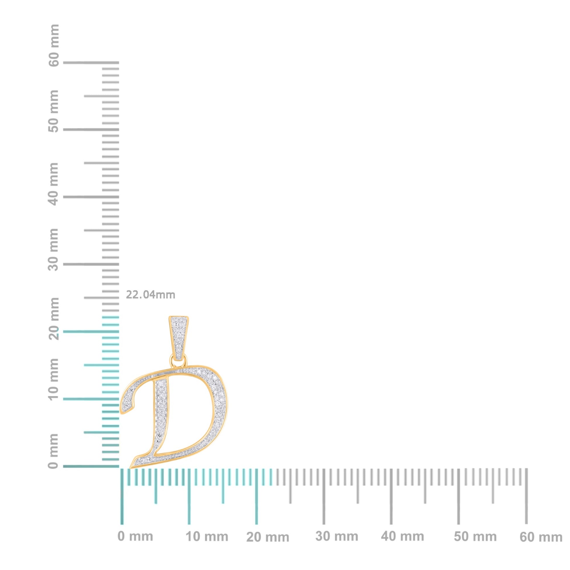 10K Yellow Gold Round Diamond D Letter Initial Pendant 1/10 Cttw