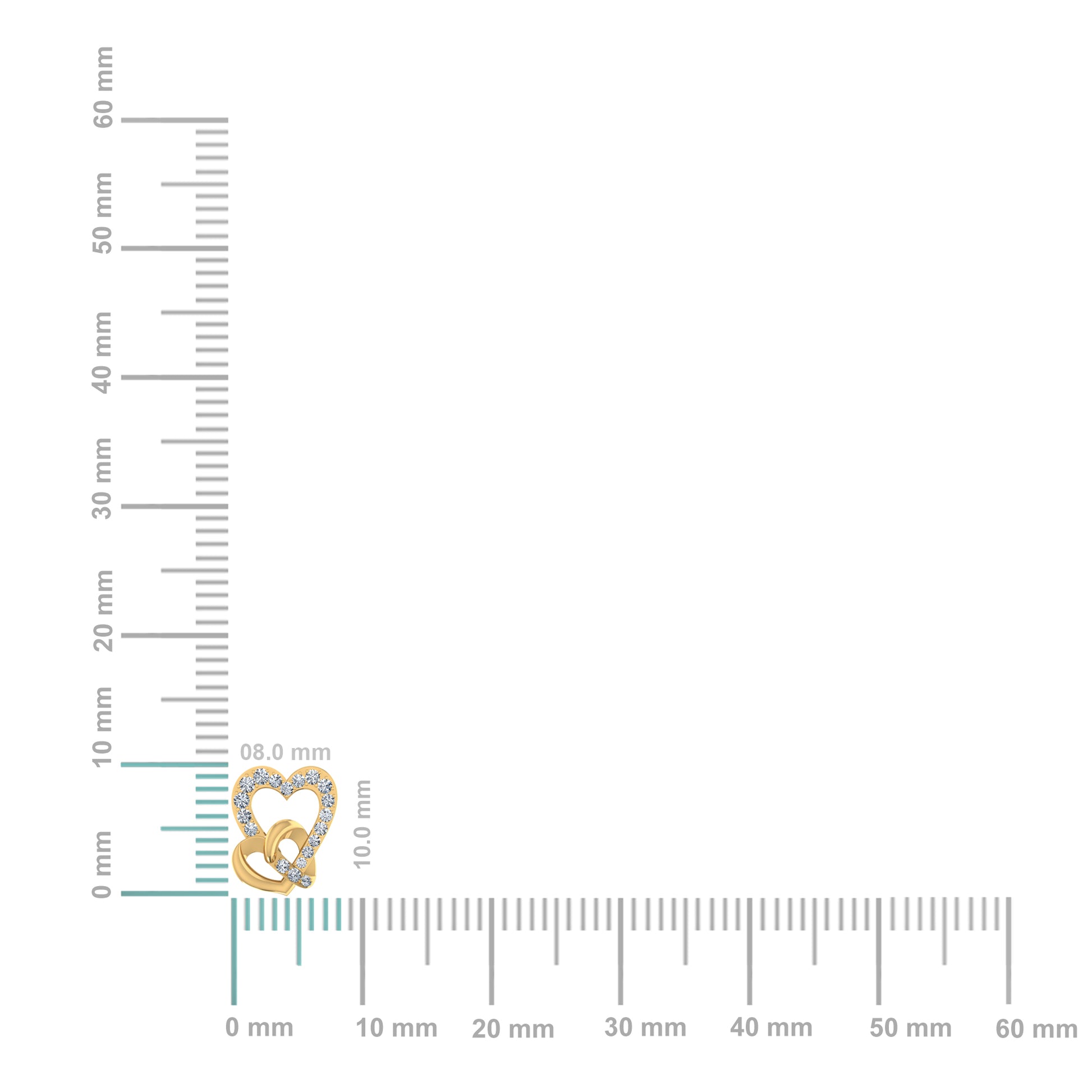 10K Yellow Gold Round Diamond Double Heart Stud Earrings 1/5 Cttw