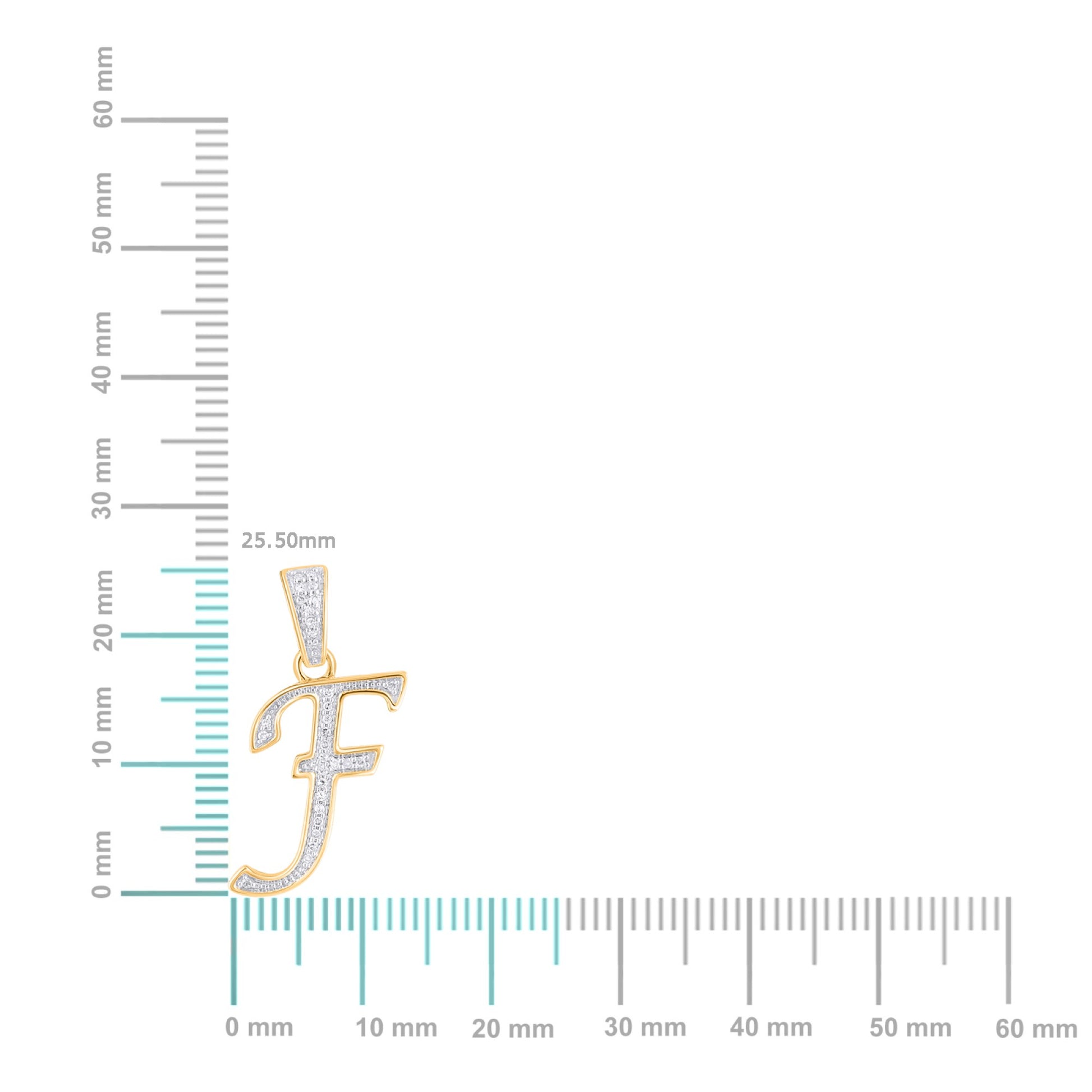 10K Yellow Gold Round Diamond F Letter Initial Pendant 1/10 Cttw