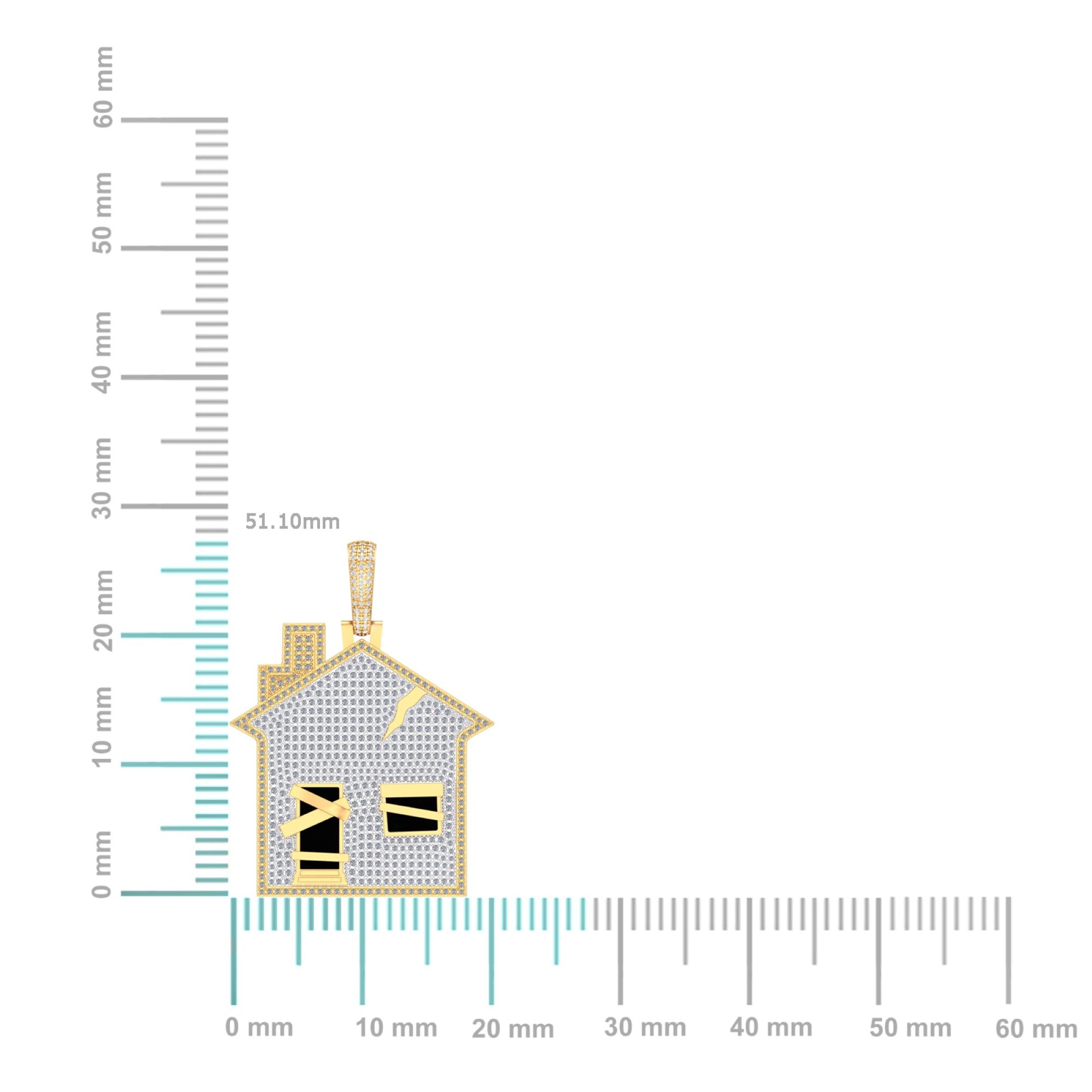 10K Yellow Gold Round Diamond House Designer Pendant 1-3/4 Cttw