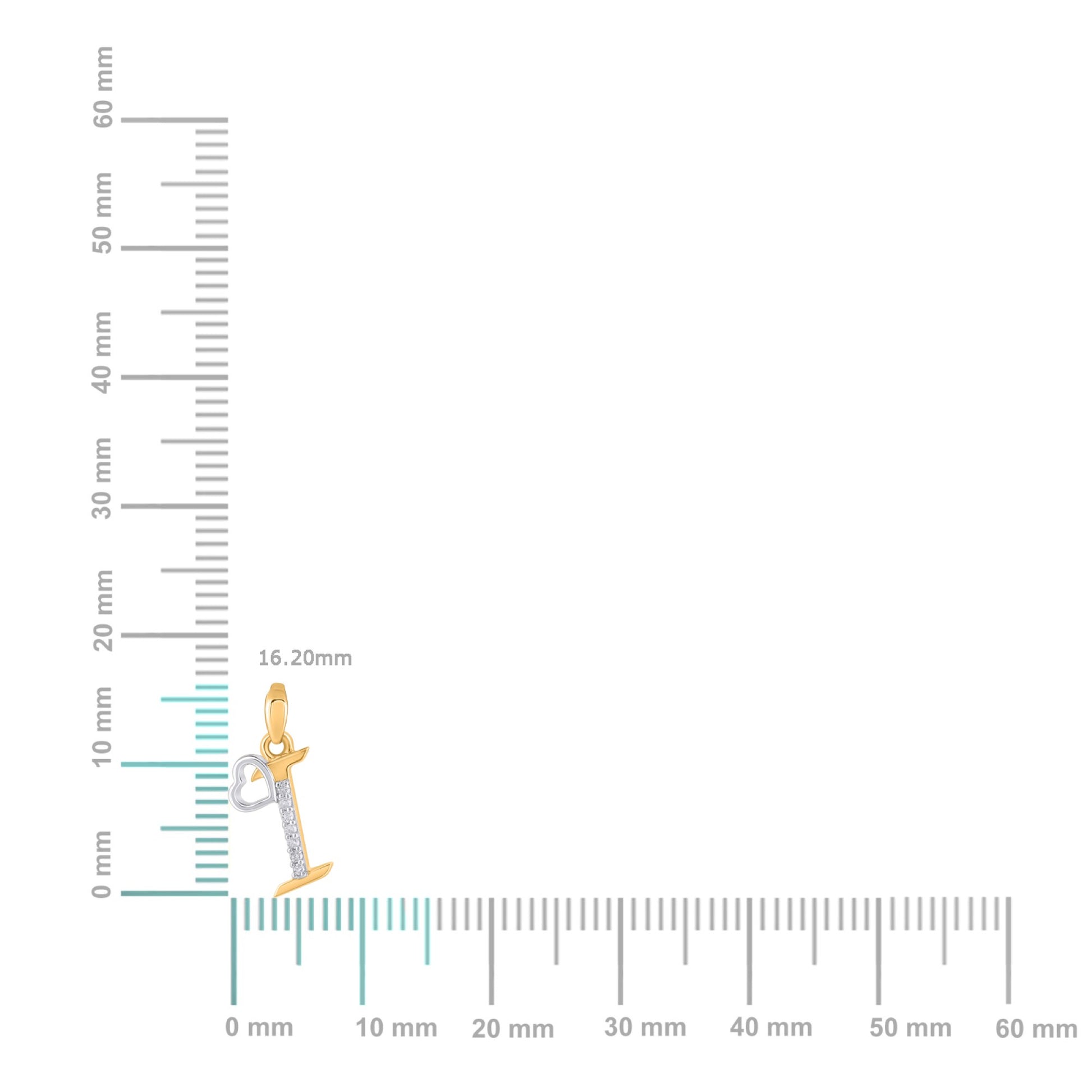 10K Yellow Gold Round Diamond I Letter Initial With Heart Pendant 1/10 Cttw