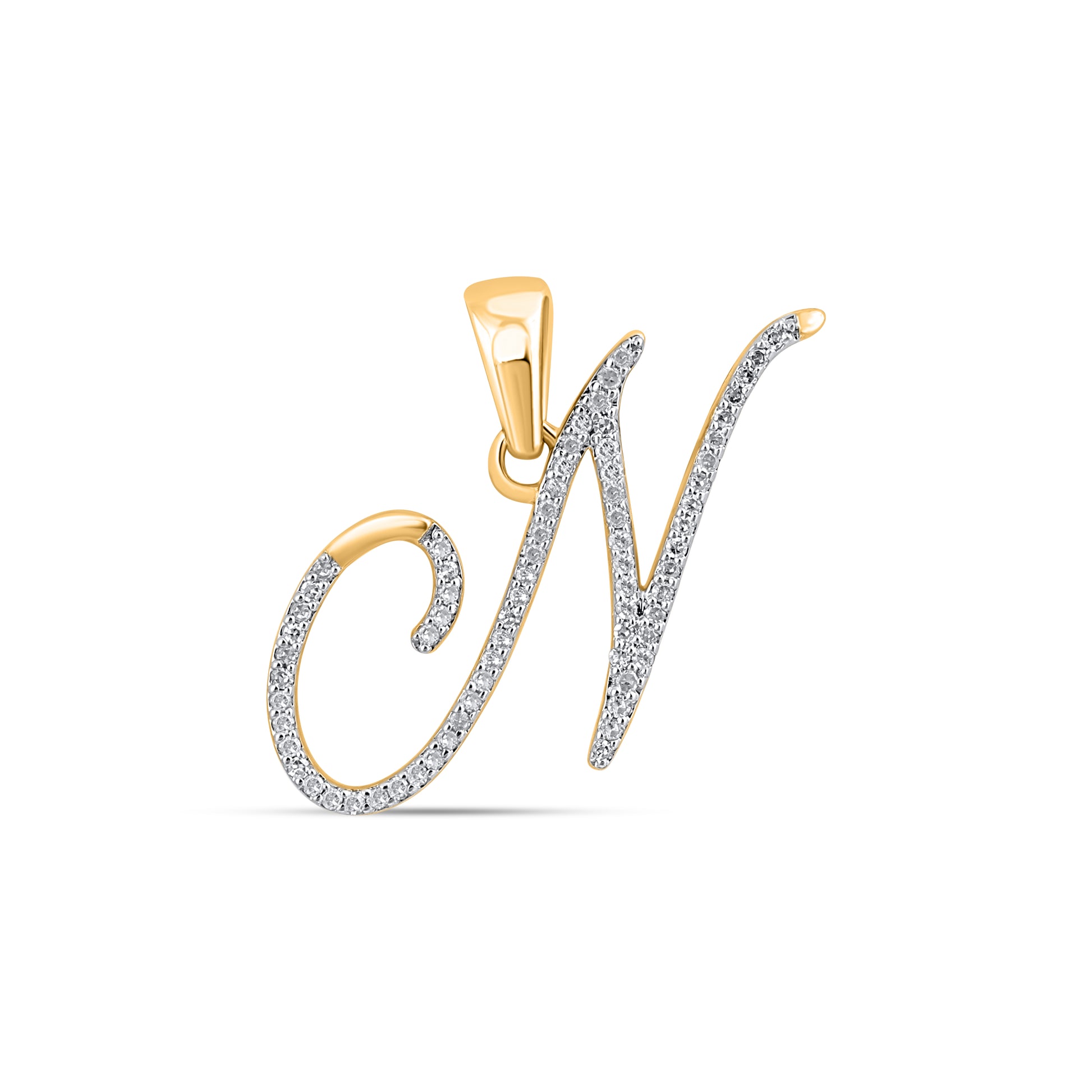 10K Yellow Gold Round Diamond N Letter Initial Pendant 1/8 Cttw