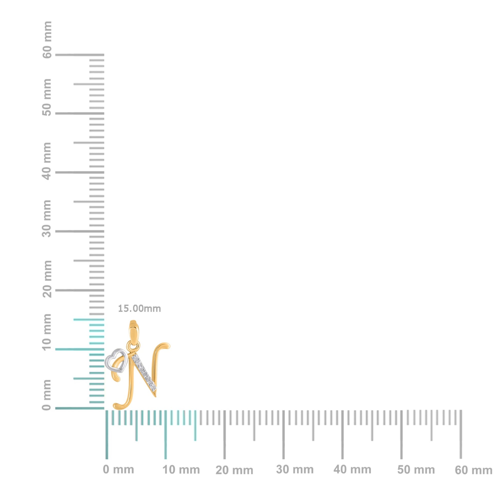 10K Yellow Gold Round Diamond N Letter Initial With Heart Pendant 1/10 Cttw