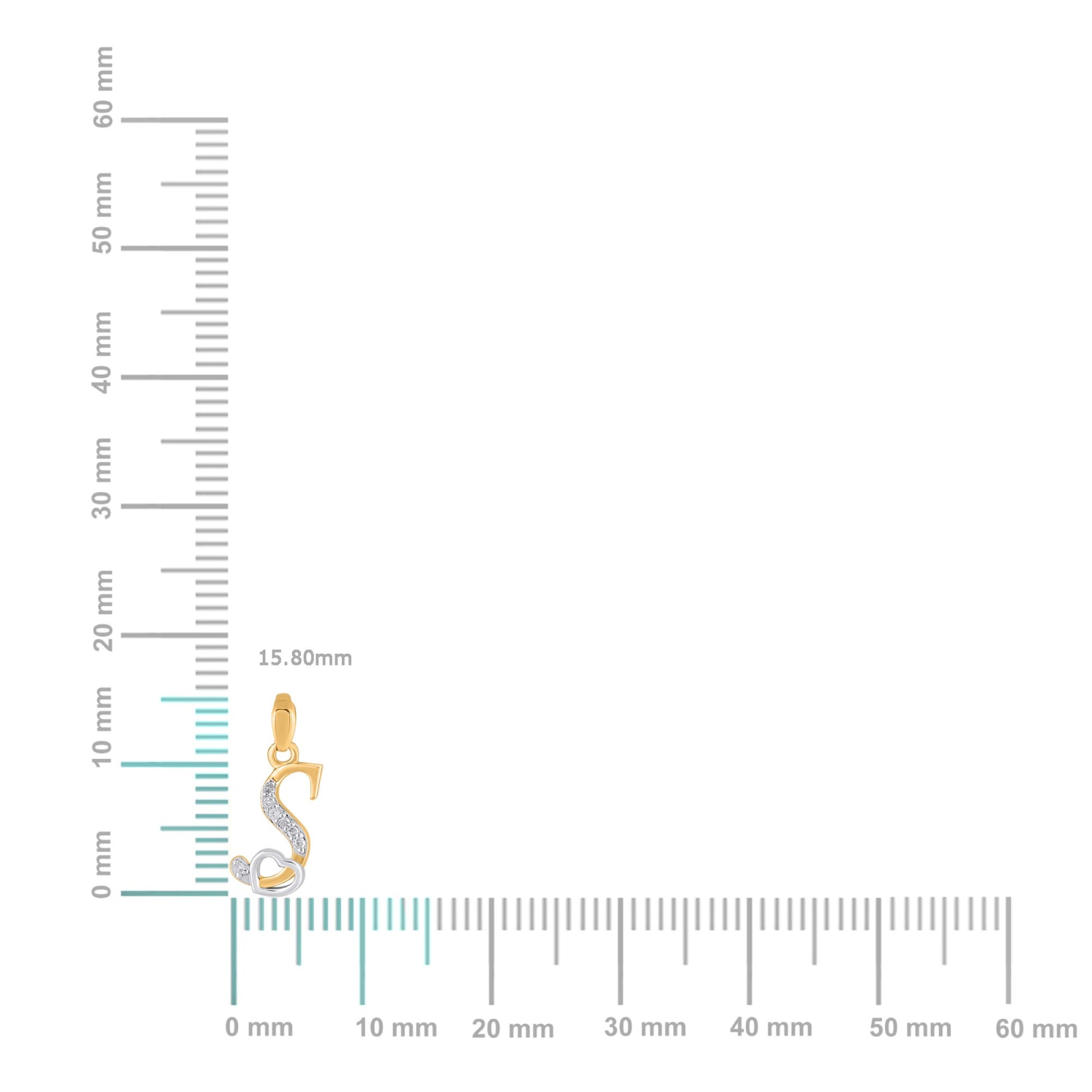 10K Yellow Gold Round Diamond S Letter Initial With Heart Pendant 1/10 Cttw