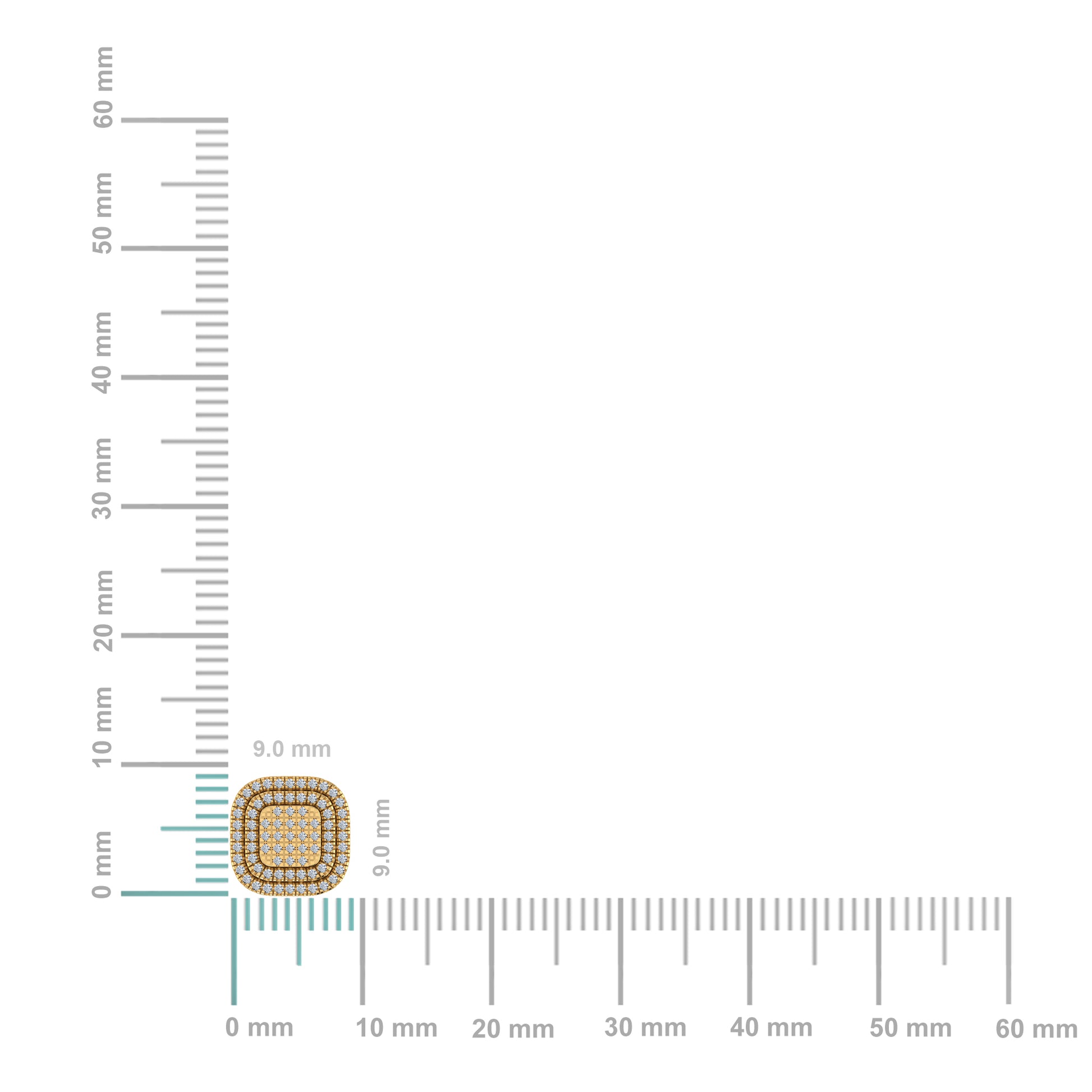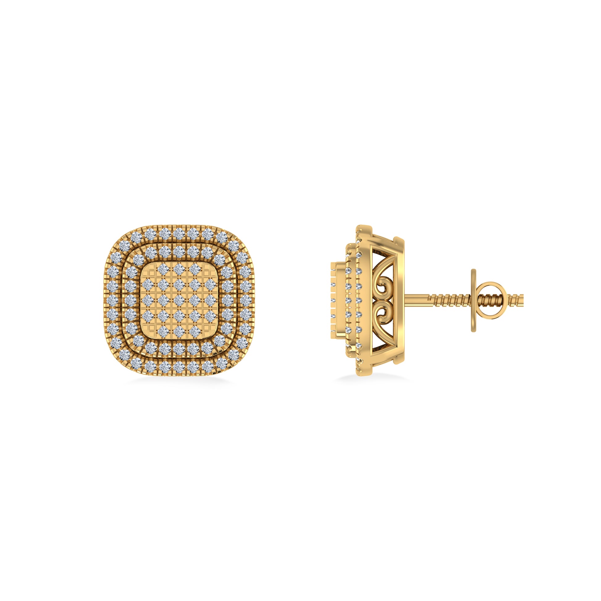 10K Yellow Gold Round Diamond Square Shape Designer Mens Halo Stud Earring 1/3 Cttw