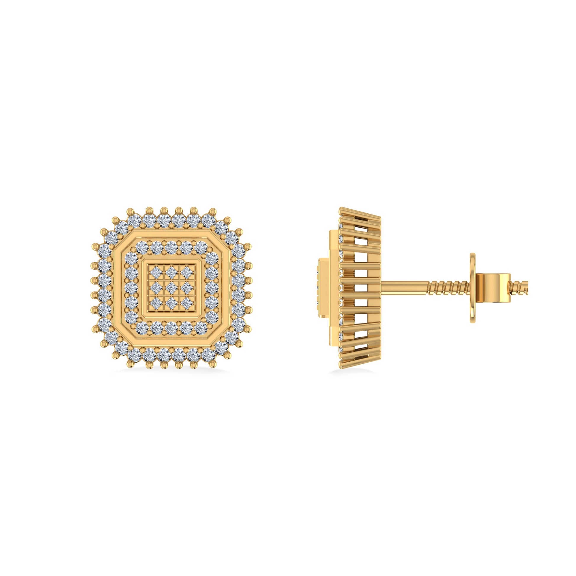 10K Yellow Gold Round Diamond Square Shape Designer Mens Stud Earring 1/5 Cttw