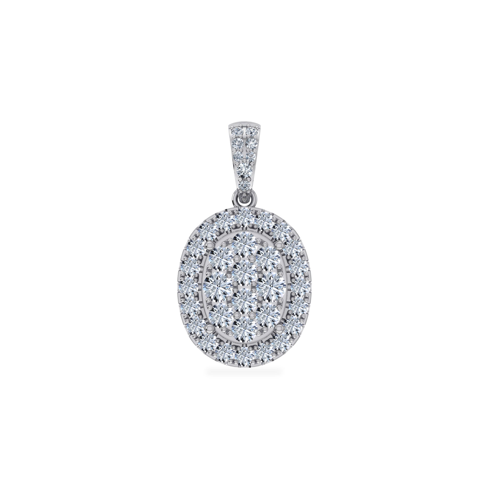 14K White Gold Moissanite Oval Shape Halo Floral Womens Designer Pendants 1-1/4 Cttw