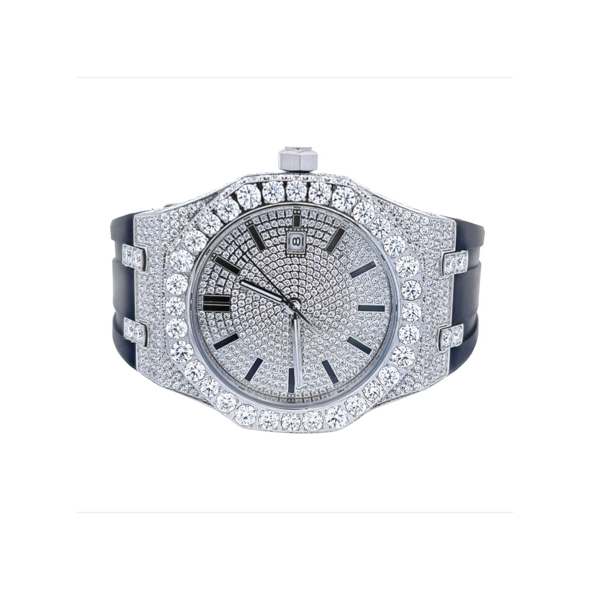 Moissanite Stainless Steel Watch Black Rubber Band 15-3/4 Cttw