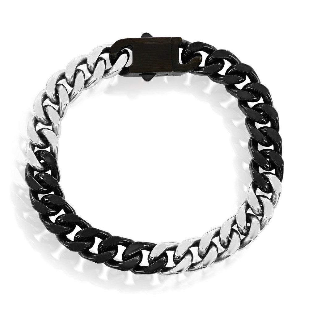 Stainless Steel 10mm Cuban Link Bracelet - Black & Silver