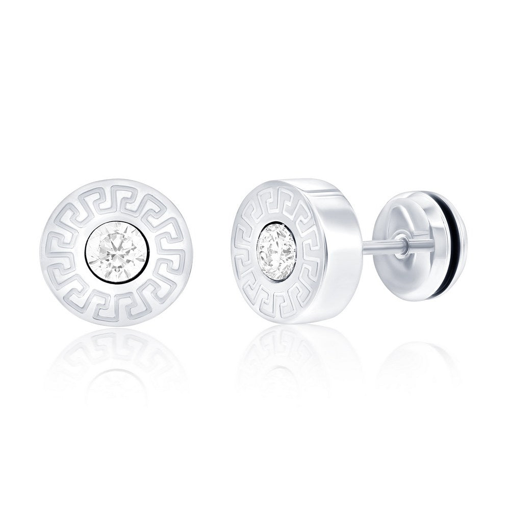 Stainless Steel, 10mm Round Greek Key CZ Studs