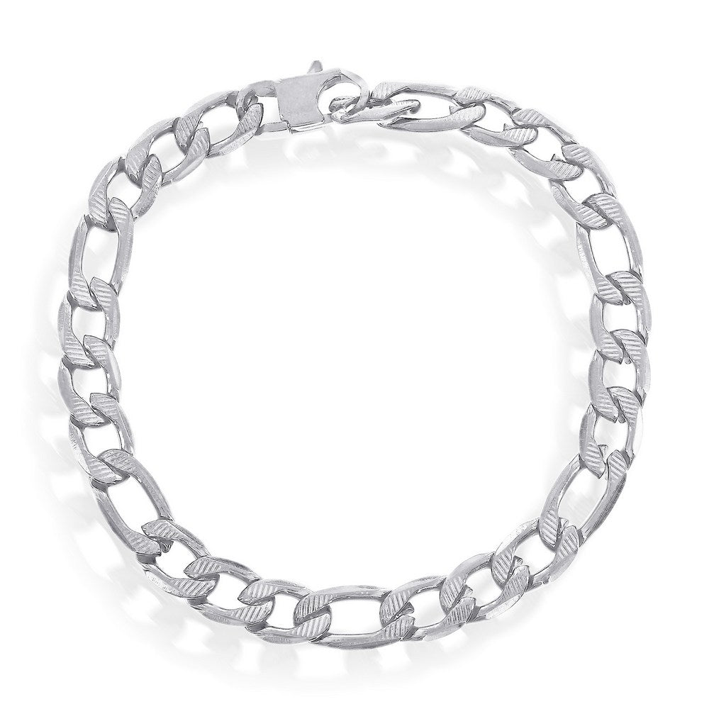 Stainless Steel 8mm Textured Figaro Chain Bracelet
