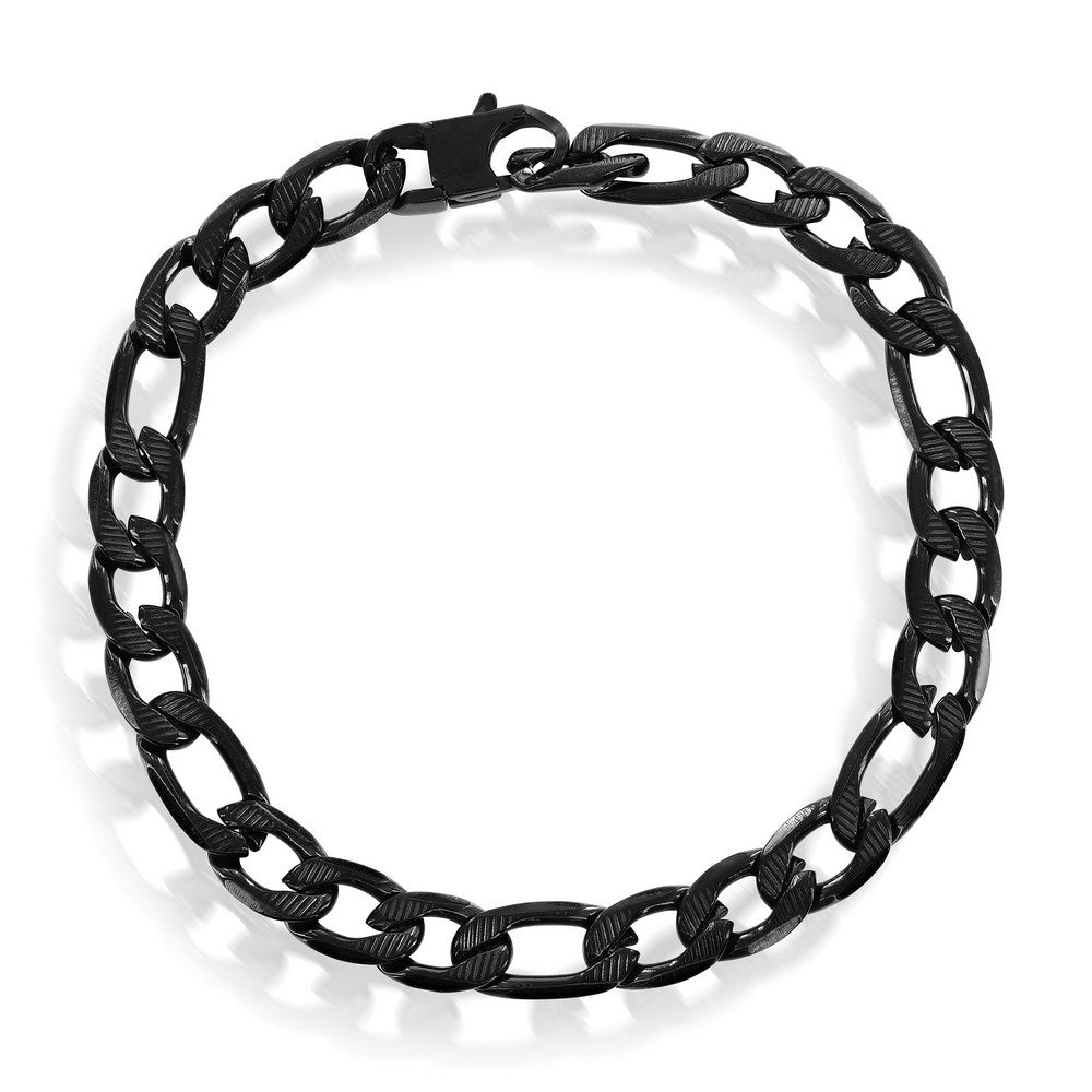Stainless Steel 8mm Textured Figaro Chain Bracelet - Black Plated