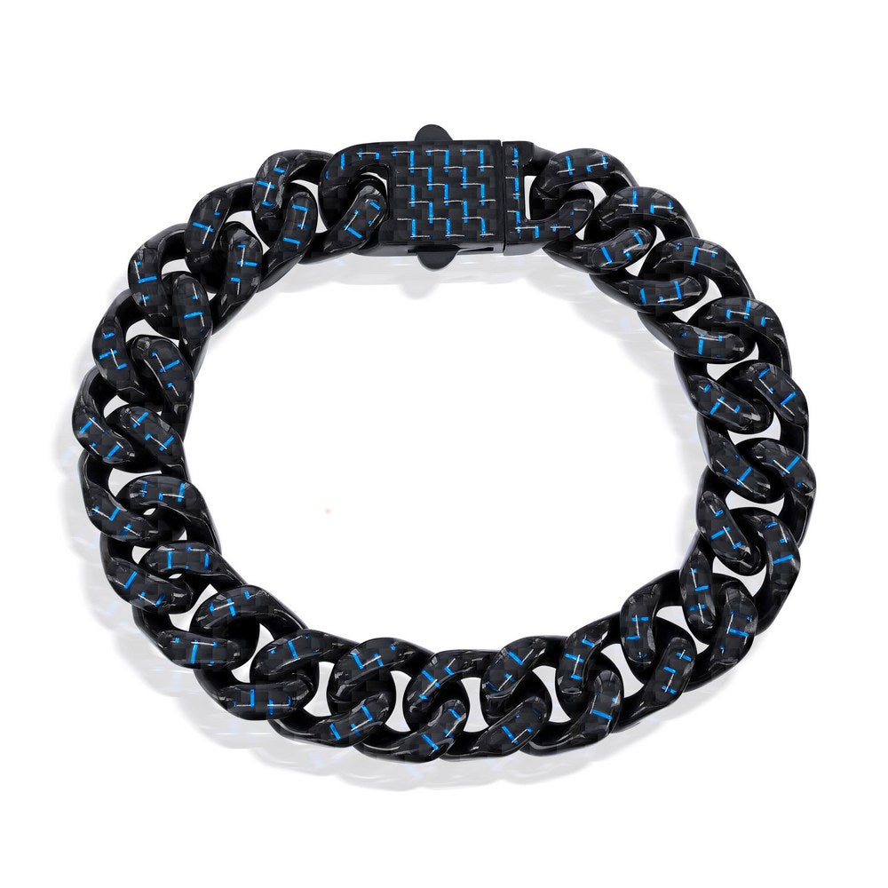Stainless Steel Carbon Fiber Heavy Cuban Bracelet - Black & Blue
