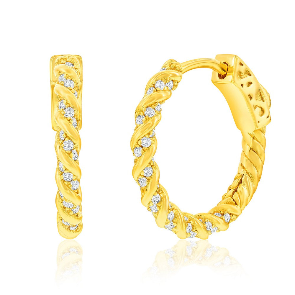 Sterling Silver, 19mm Rope Design CZ Hoop Earrings - Gold Plated