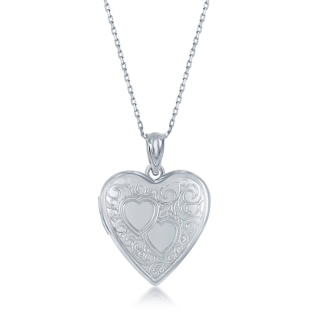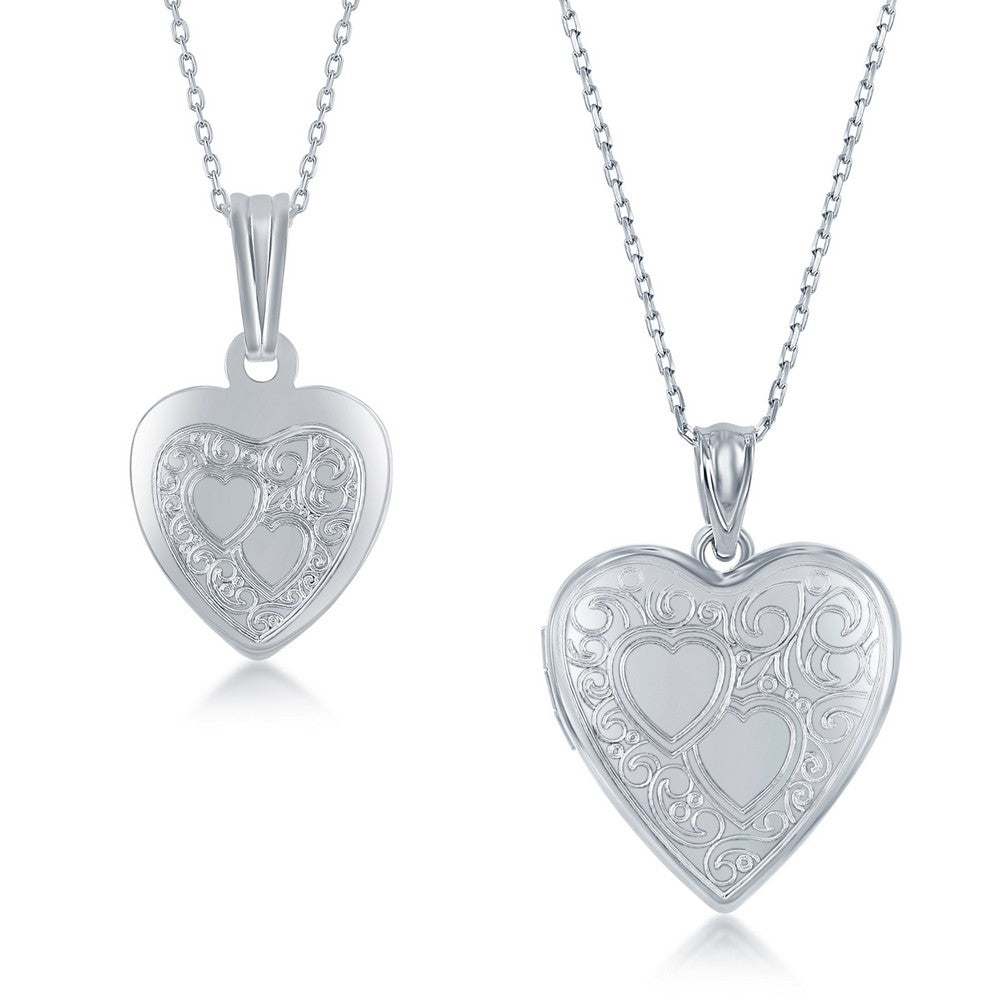 Sterling Silver 2PC Mother & Daughter Set, Heart Pendant + Locket - Double Heart