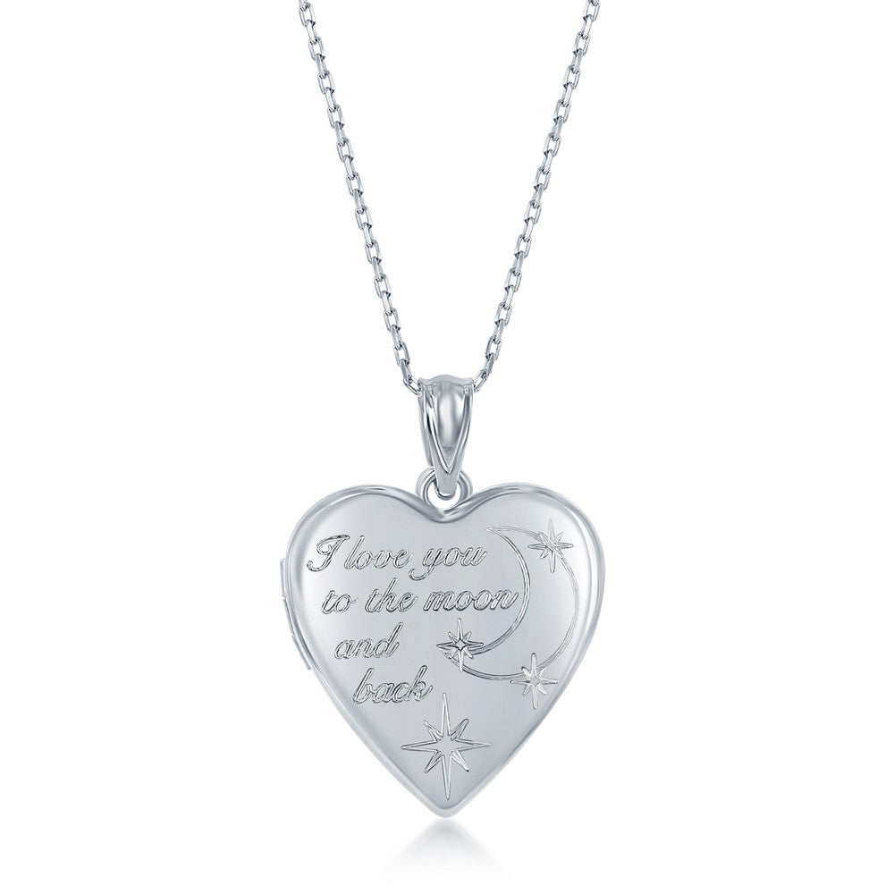 Sterling Silver 2PC Mother & Daughter Set, Heart Pendant + Locket - I Love You to the Moon & Back