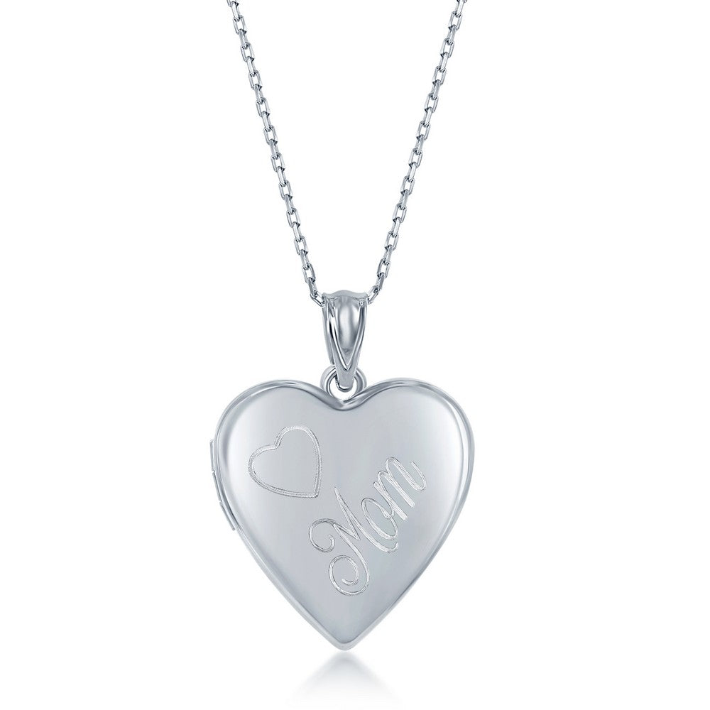 Sterling Silver 2PC Mother & Daughter Set, Heart Pendant + Locket - Mom
