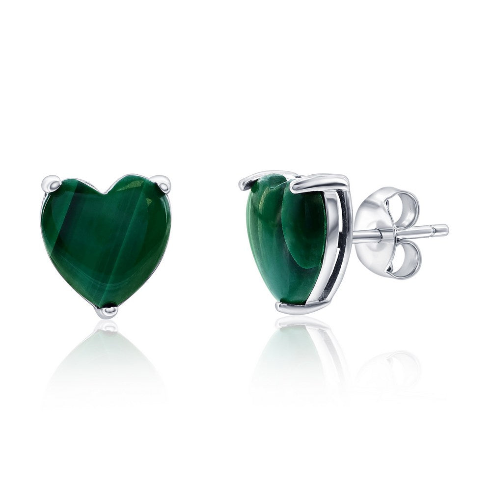 Sterling Silver, 3 Prong Heart Studs - Malachite