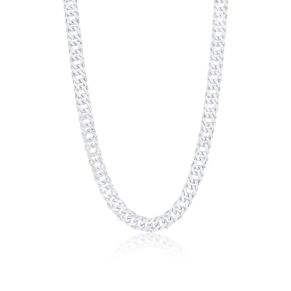 Sterling Silver 7.5mm Textured Double-Link Chain - Rhodium Plated