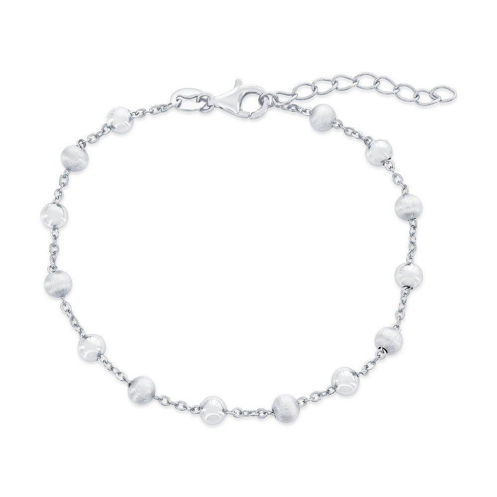 Sterling Silver, Alternating Brushed & Polished Bead Bracelet