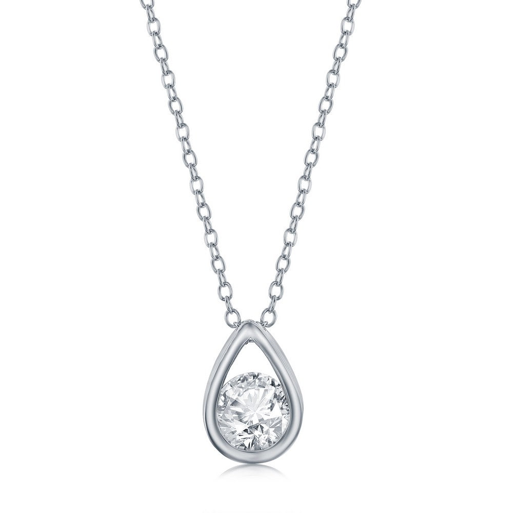Sterling Silver 'April Birthstone' Pear-shaped Necklace - White Topaz