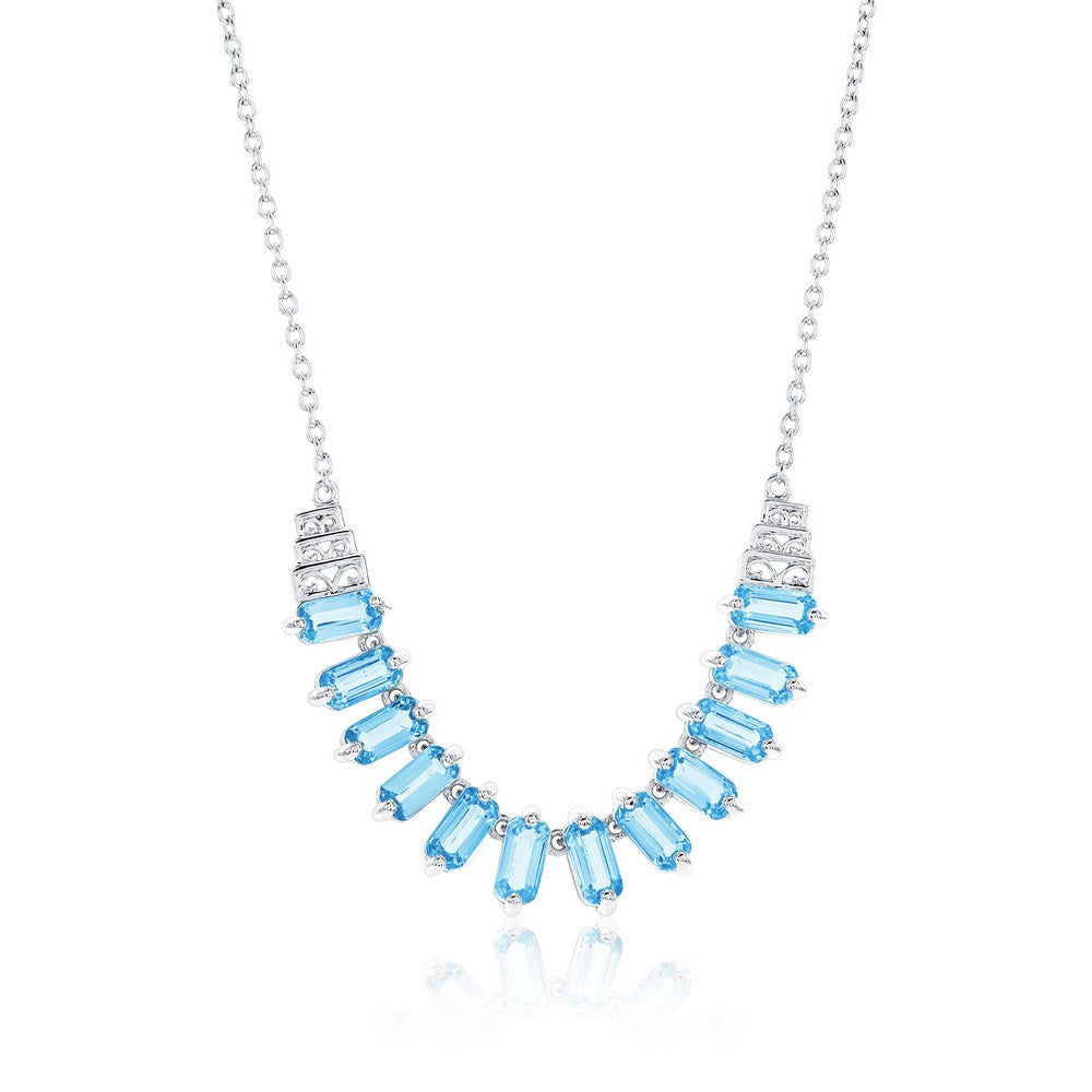 Sterling Silver, Baguette Designed Gem Necklace - Sky Blue Topaz