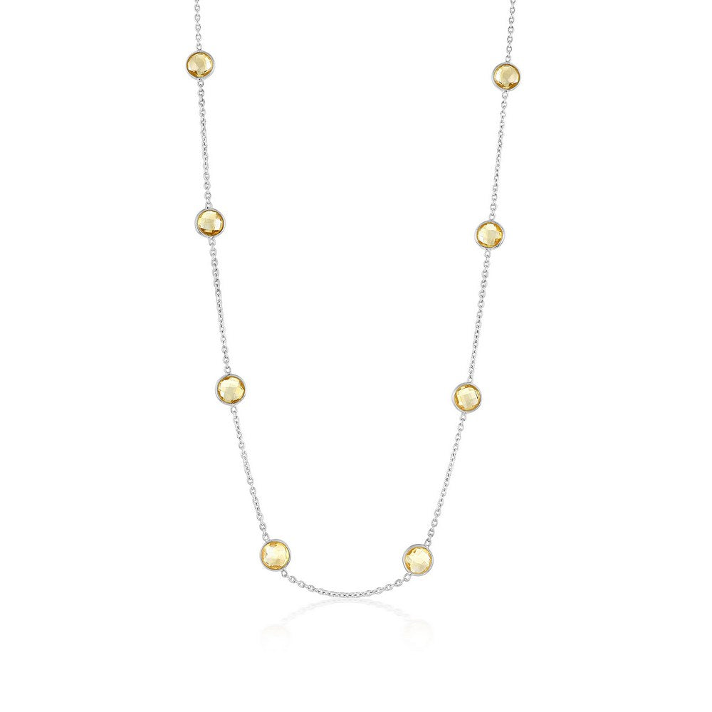 Sterling Silver Bezel-Set 7mm Round Gemstone Station Necklace - Citrine (10.70cttw)