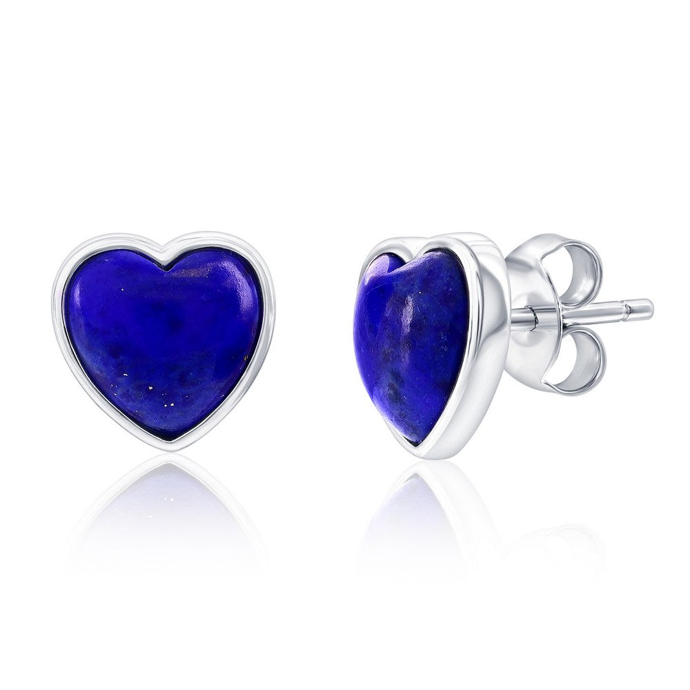 Sterling Silver, Bezel-Set Heart Studs - Lapis