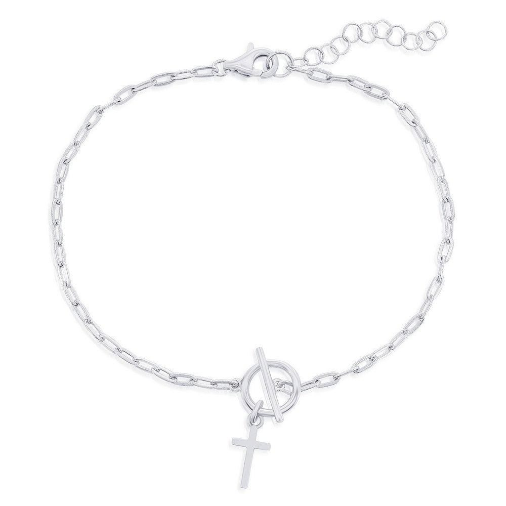 Sterling Silver, Cross Charm Paperclip Toggle Bracelet