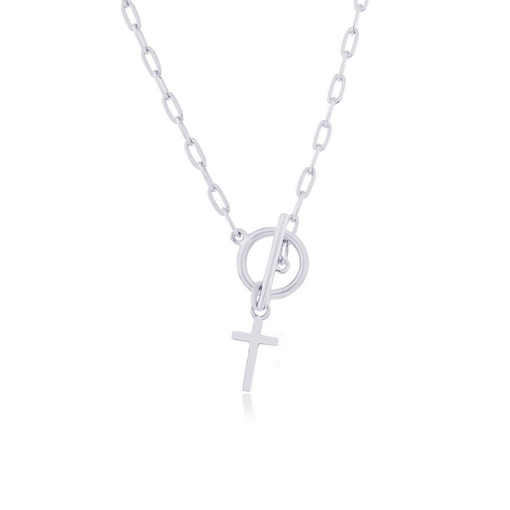 Sterling Silver, Cross Charm Paperclip Toggle Necklace