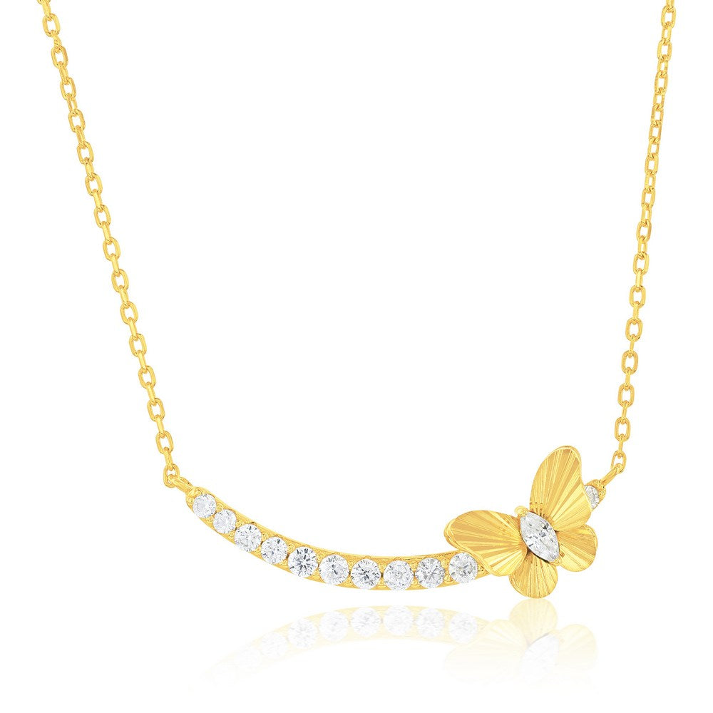 Sterling Silver, D-C Butterfly, CZ Bar Neckalce - Gold Plated