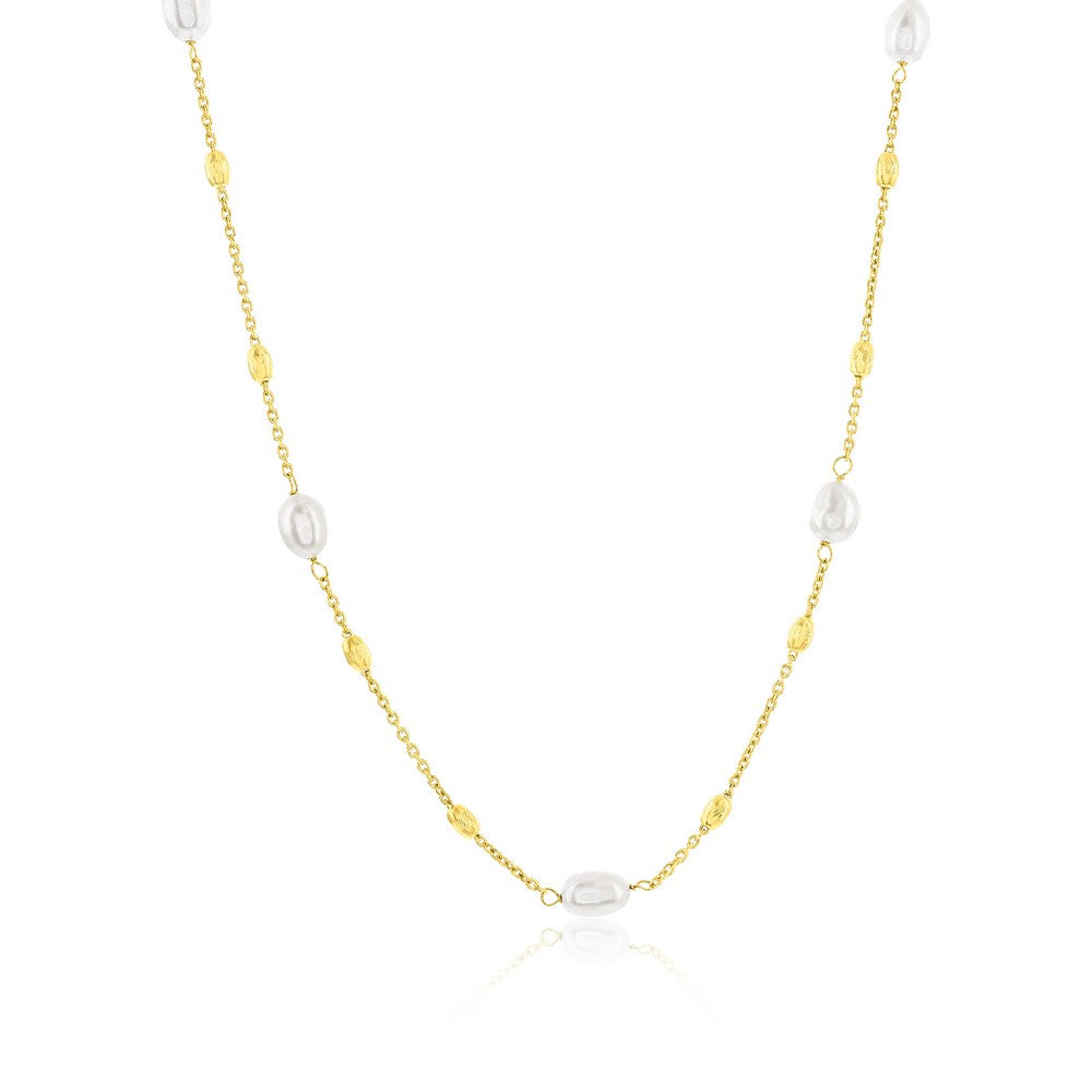 Sterling Silver, FWP & Bead Station Necklace - Gold Plated