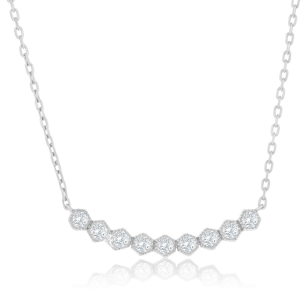 Sterling Silver, Hexagon CZ Curved Bar Necklace