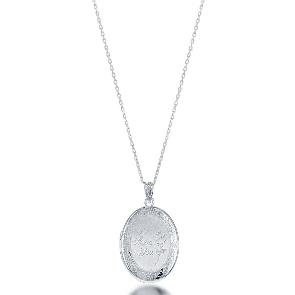 Sterling Silver "I Love You" with Rose Oval Locket W/chain
