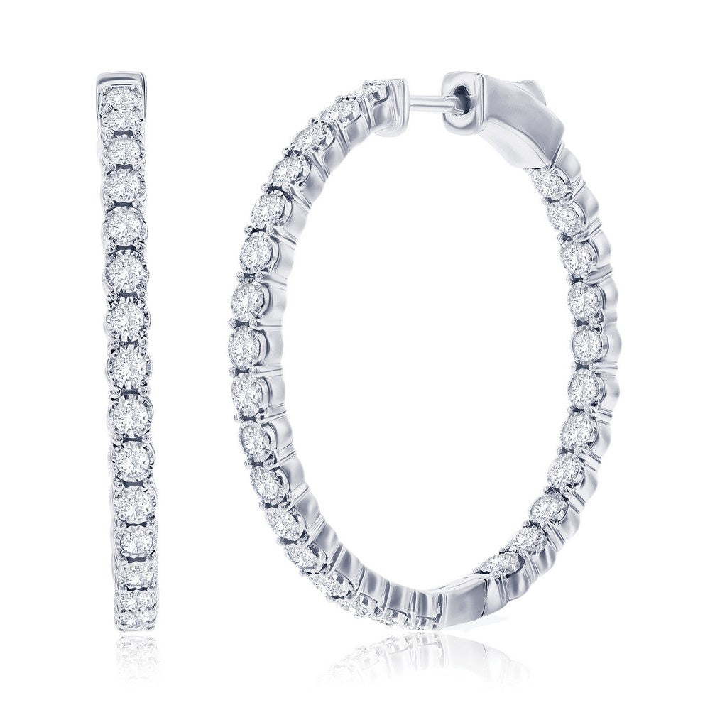 Sterling Silver, Inside-Outside 1.44cttw Lab-Grown Diamond, 32mm Hoop Earrings - (56 Stones)