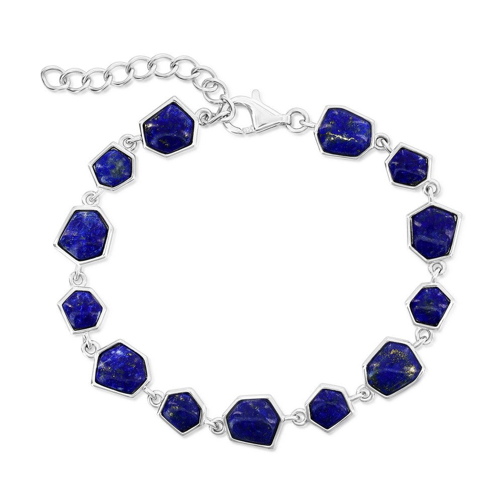 Sterling Silver, Irregular Shaped Link Bracelet - Lapis