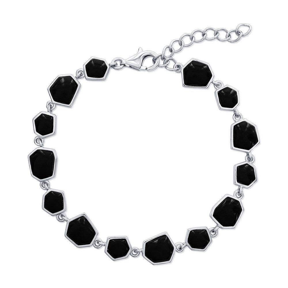 Sterling Silver, Irregular Shaped Link Bracelet - Onyx