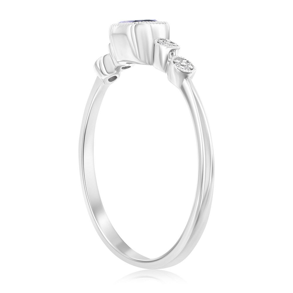 Sterling Silver, Lab-Grown 0.45ct Sapphire & 0.03ct Natural Diamond Ring - (17 Stones)